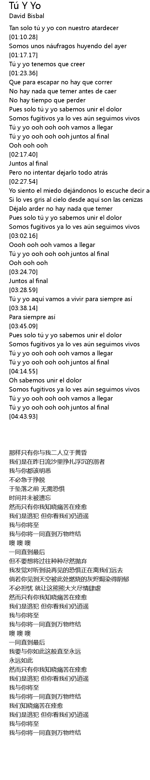 | [04:34.33] | Tu y yo ooh ooh ooh juntos al final |