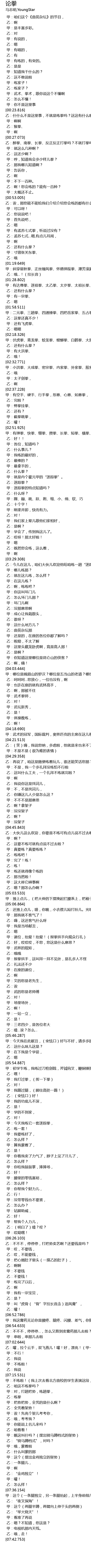 | [00:23.816] | 乙:什什么不是这里事,不就是练拳吗?这这有什么啦!太极拳对不对? |