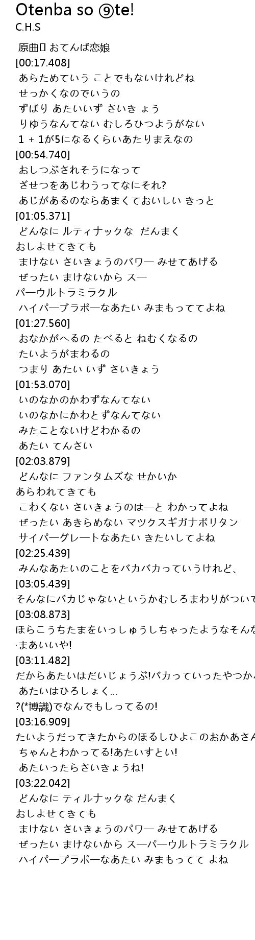 | [03:55.096] | ぜったい まけないから ス一パ一ウルトラミラクル |