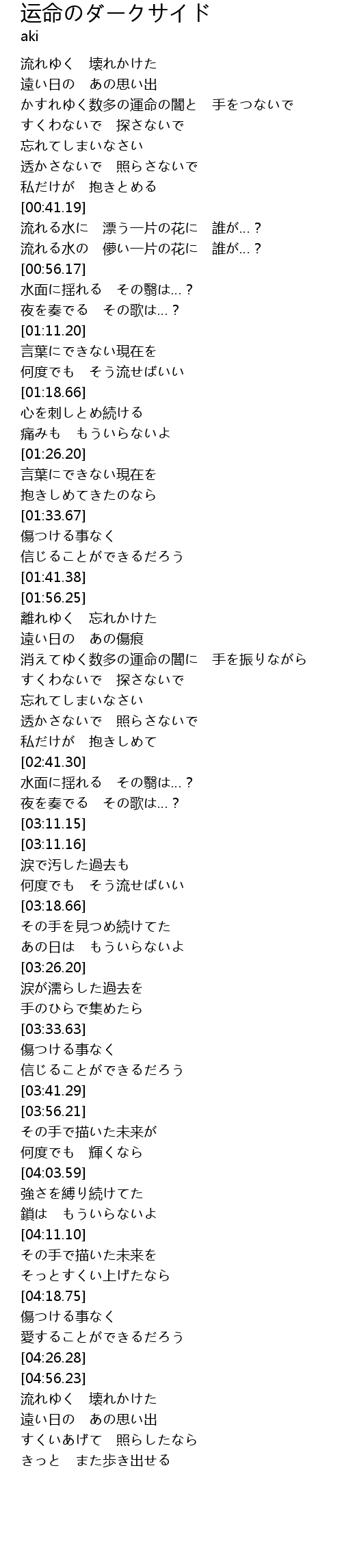 | [04:56.24] | 流れゆく 壊れかけた |