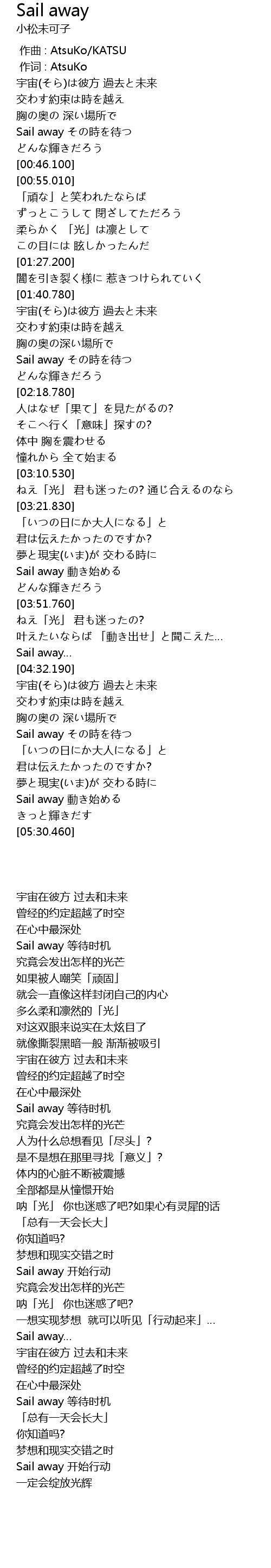 | [02:03.170] | Sail away その時を待つ |