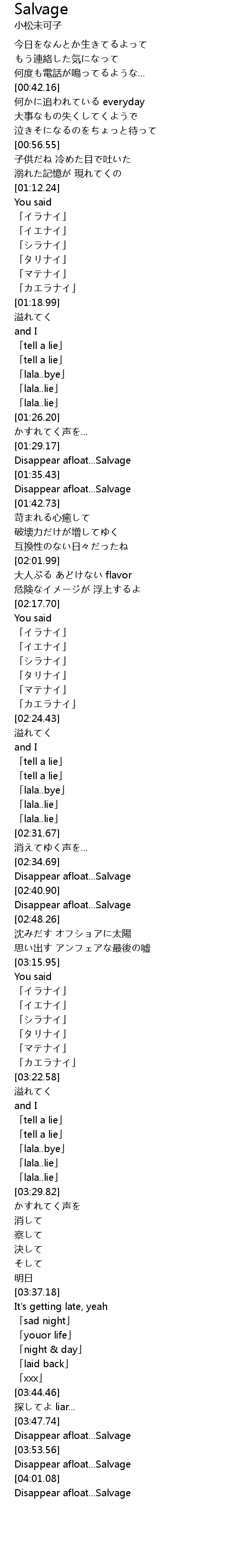| [00:58.12] | 子供だね 冷めた目で吐いた |