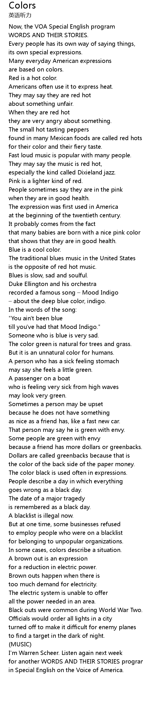 | [00:32.75] | Red is a hot color. |