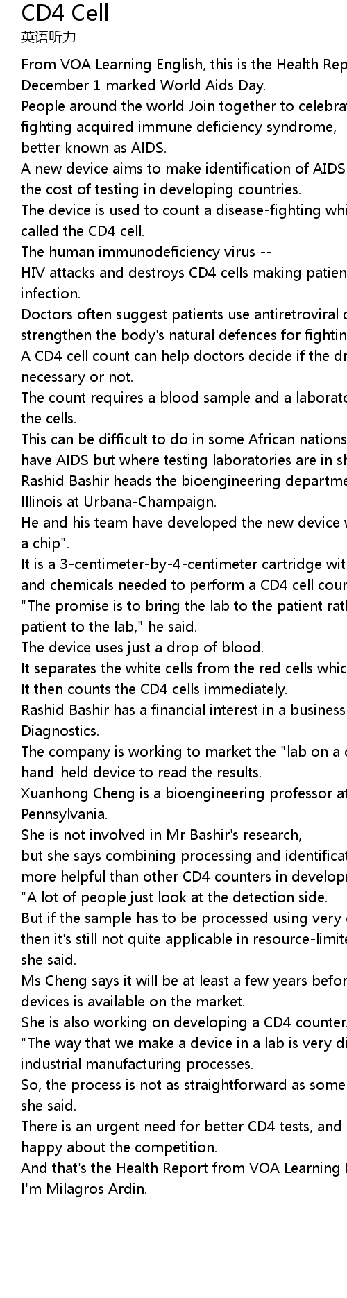 [00:33.70] The device is used to count a disease-fighting white blood cells called the CD4 cell.