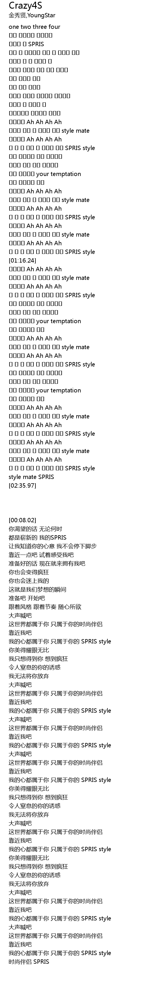 | [02:15.58] | 내 맘 다 너의 것 너만을 위한 SPRIS style |