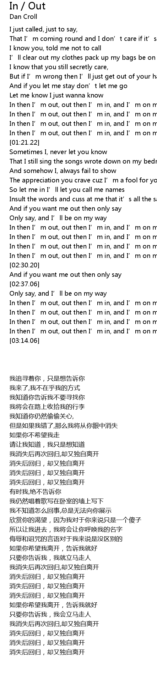 | [01:33.42] | In then I’m out, out then I’m in, and I’m on my way |