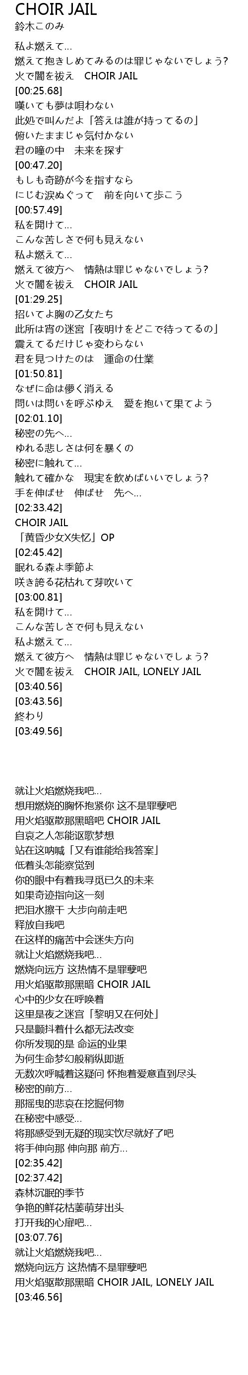 | [03:26.80] | 火で闇を祓え CHOIR JAIL, LONELY JAIL |