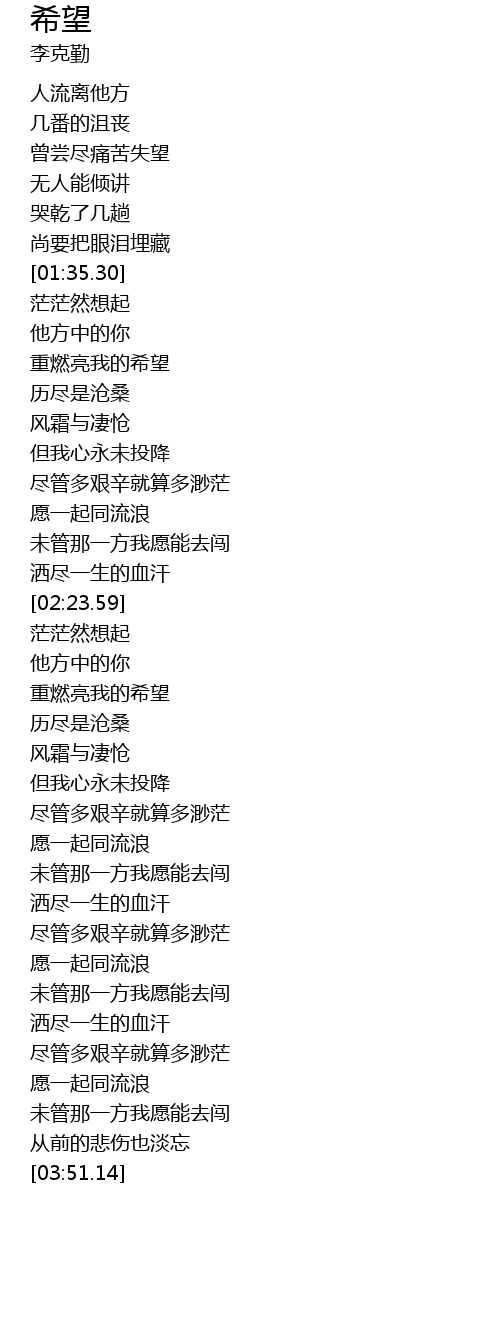| [02:47.51] | zhong ran liang wo de xi wang |