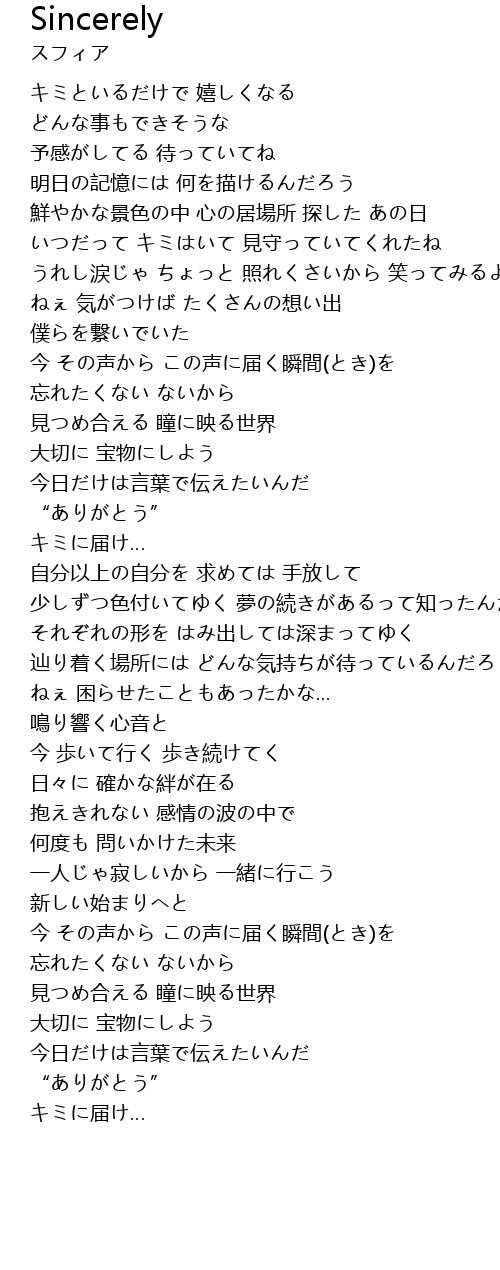| 歌曲 | Sincerely |