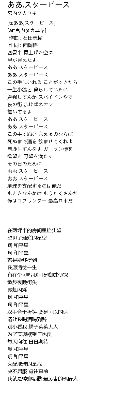 | [02:19.285] | 哦 和平星 |