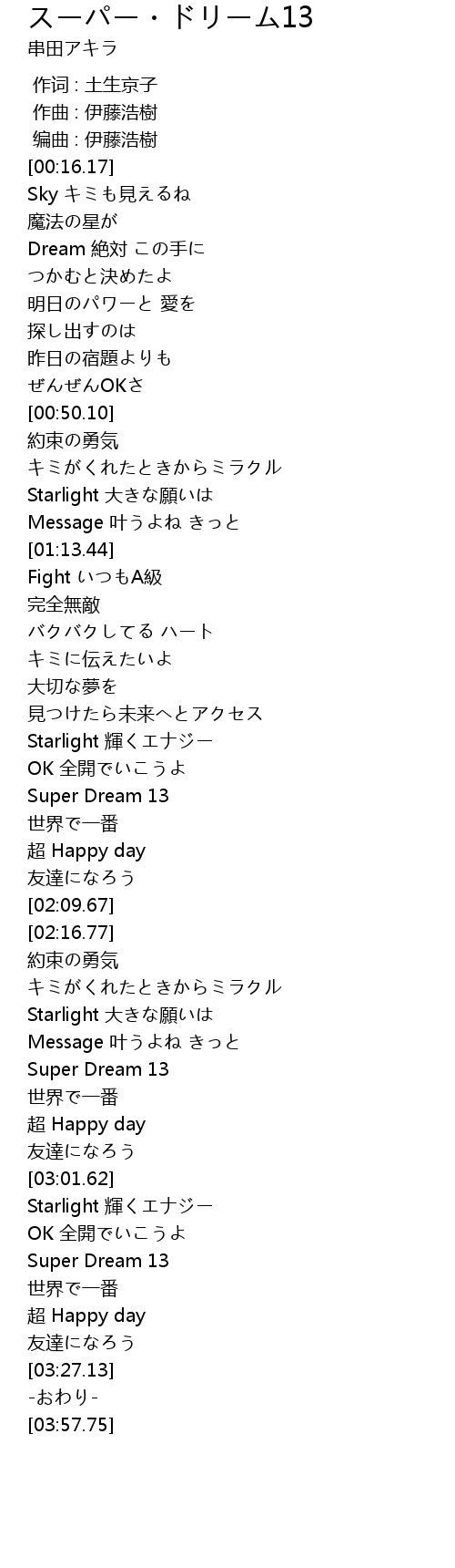 | [03:15.53] | Super Dream 13 |