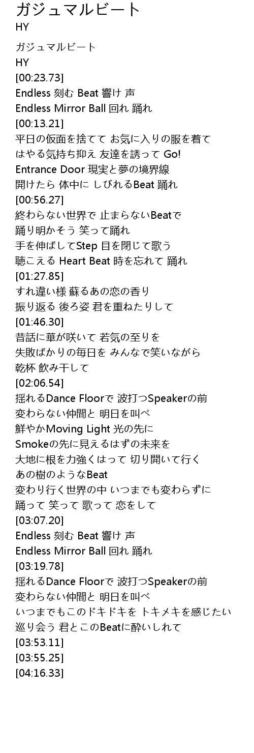 | [03:43.70] | 巡り会う 君とこのBeatに酔いしれて |