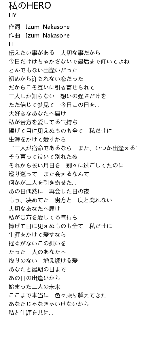| 歌曲 | 私のHERO |