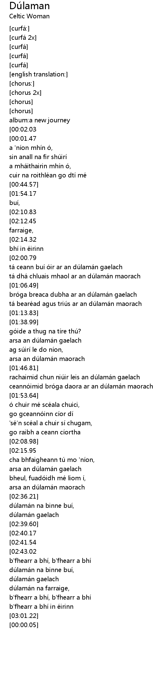 | [02:48.06][02:41.54] | dúlamán gaelach |