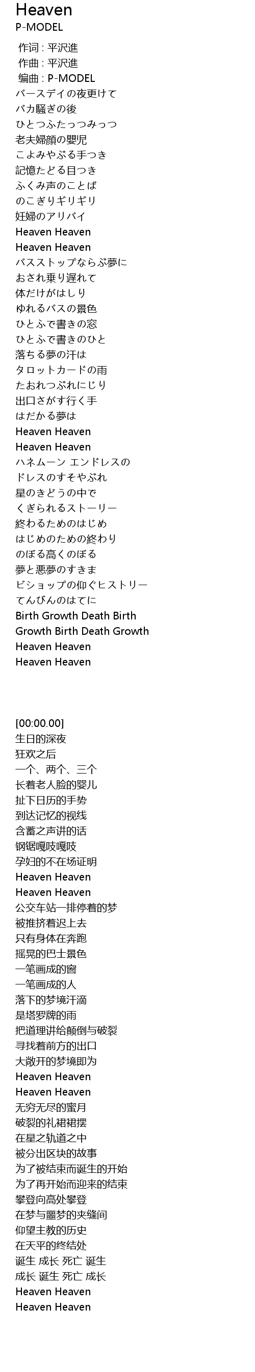 | [00:02.000] | 编曲 : P-MODEL |