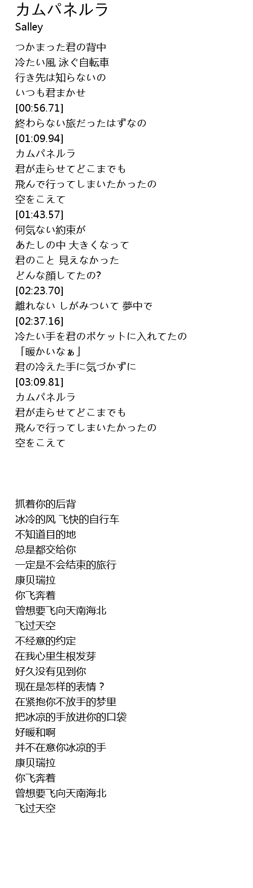 | [00:36.65] | 冷たい風 泳ぐ自転車 |