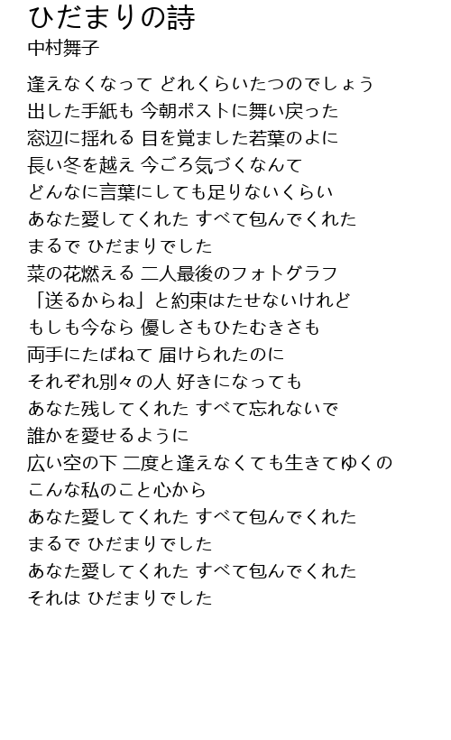 | [02:41.43] | 広い空の下 二度と逢えなくても生きてゆくの |