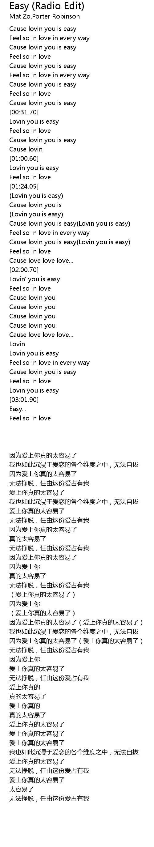 (Lovin you is easy) |