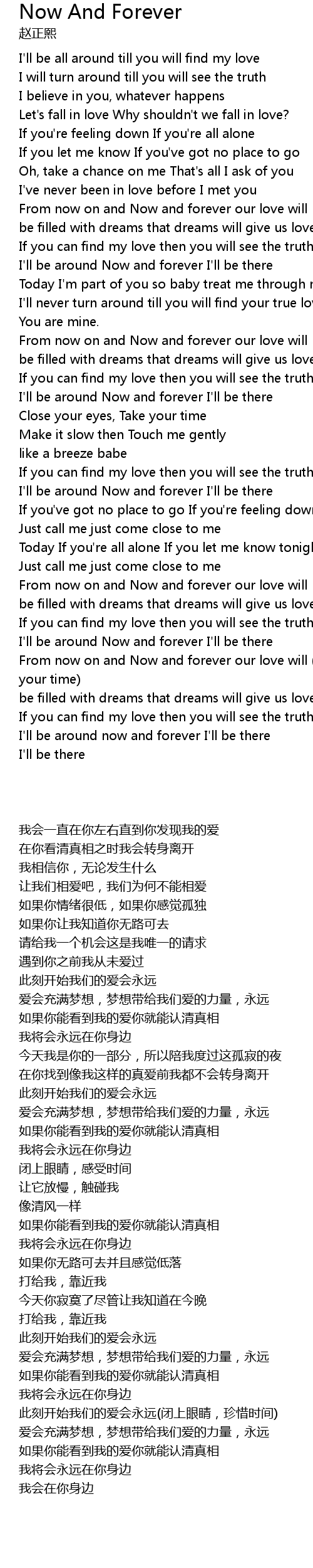 From now on and Now and forever our love will (Close your eyes, Take your time) |