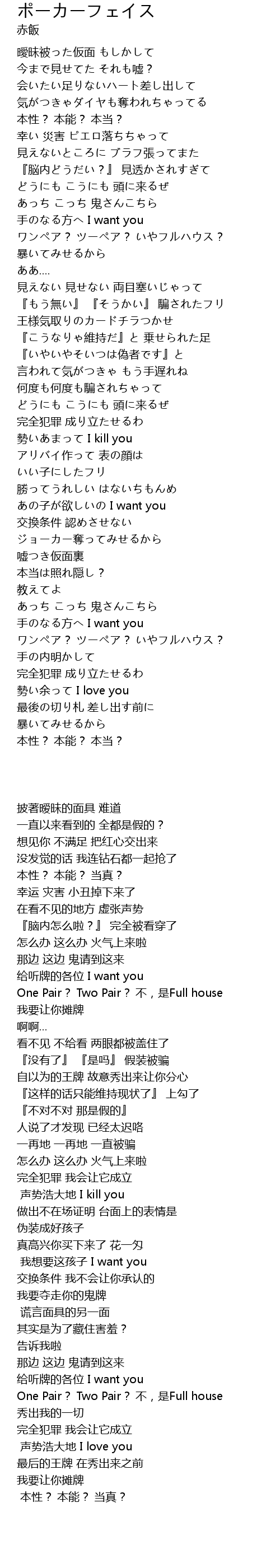 | [02:52.10] | ワンペア? ツーペア? いやフルハウス? |