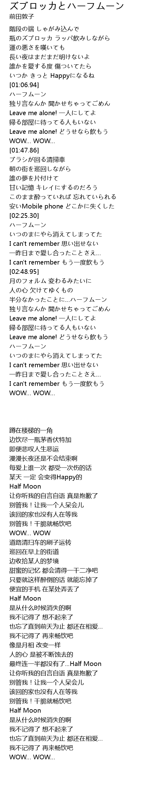 | [03:23.48] | 半分なかったことに…ハーフムーン |