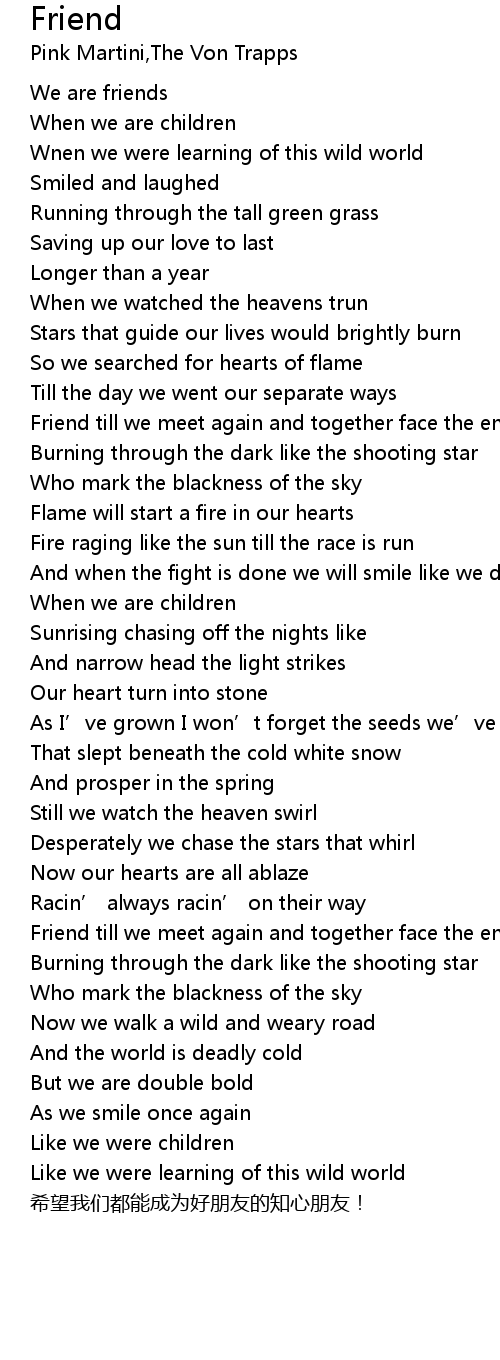| [03:59.07] | xī wàng wǒ men dōu néng chéng wéi hǎo péng you de zhī xīn péng yǒu! |