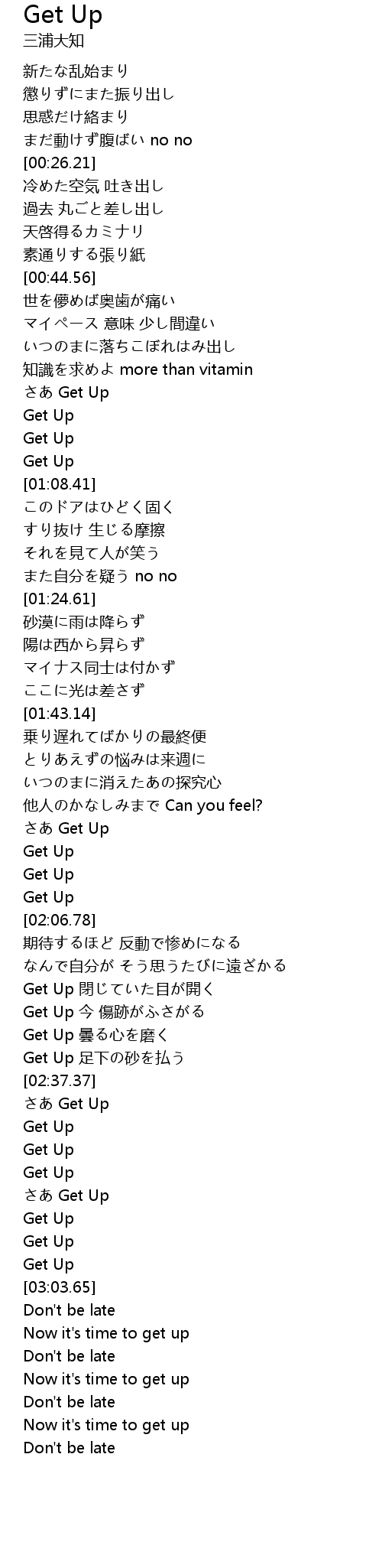 | [03:02.80] | Get Up |
