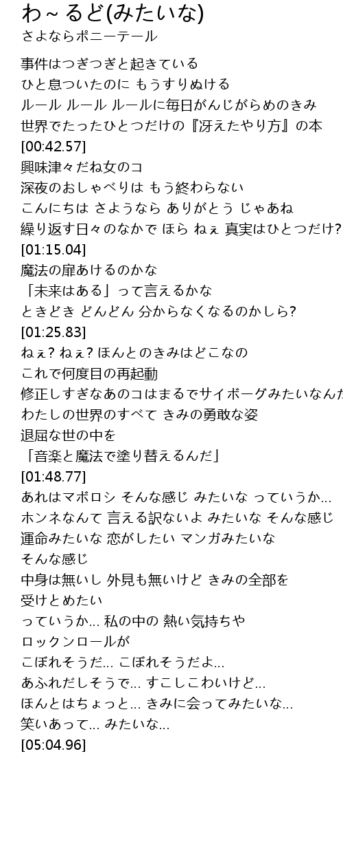 | [01:04.62] | こんにちは さようなら ありがとう じゃあね |