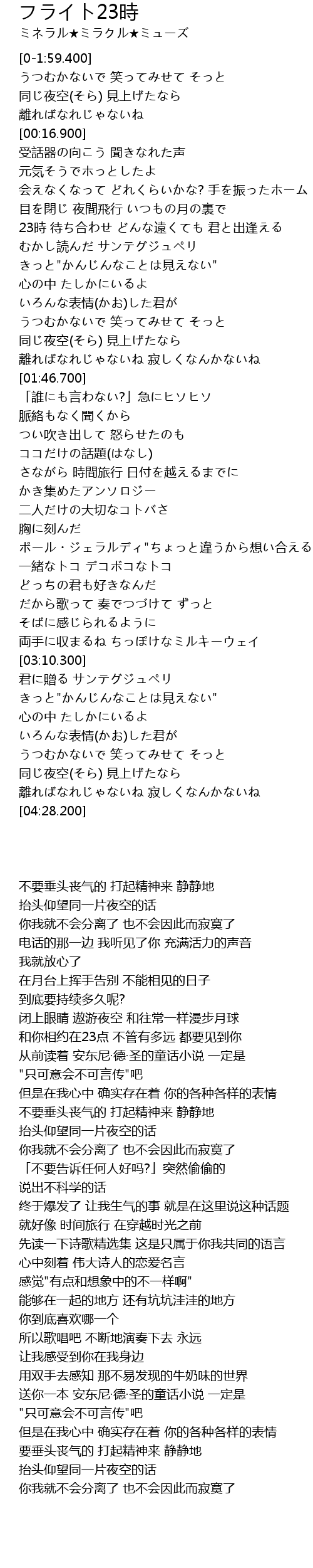 | [03:50.300] | 君に贈る サンテグジュペリ きっと"かんじんなことは見えない" |