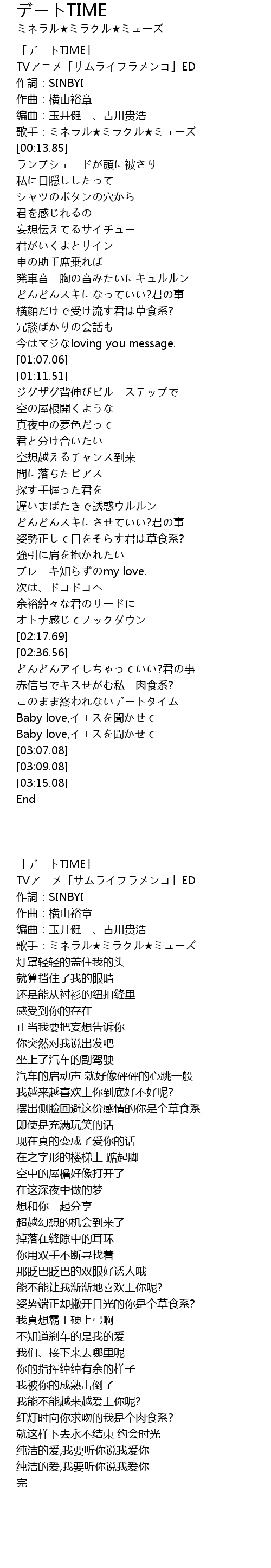| [02:51.34] | 就这样下去永不结束 约会时光 |