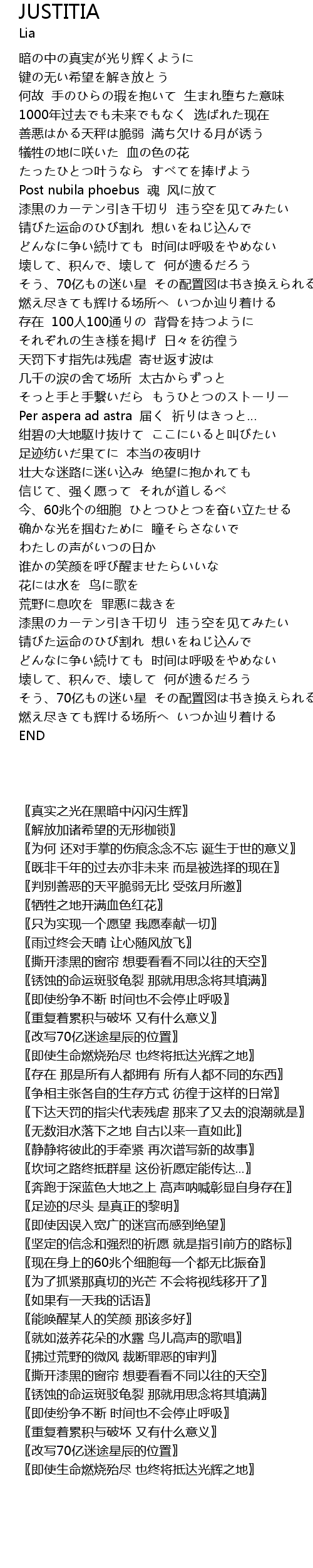 | [03:53.69] | 〖即使生命燃烧殆尽 也终将抵达光辉之地〗 |