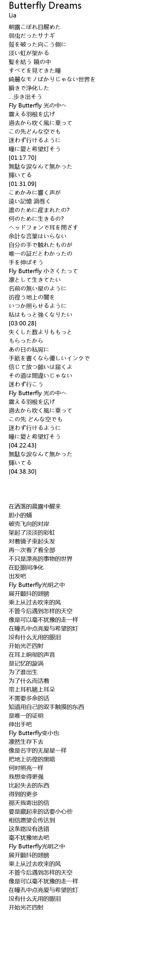 | [00:41.62] | Fly Butterfly guāng zhōng |