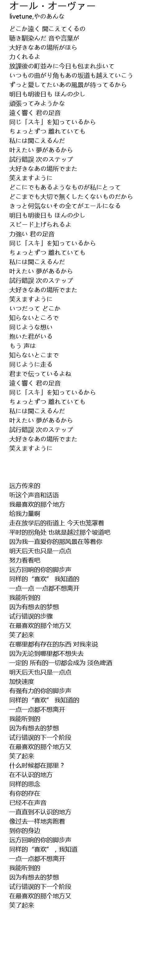 | [00:40.25] | いつもの曲がり角もあの坂道も越えていこう |
