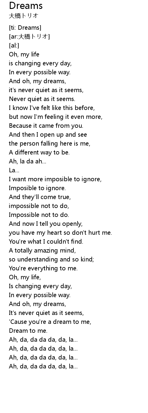 | [03:50.30] | ' Cause you' re a dream to me, |