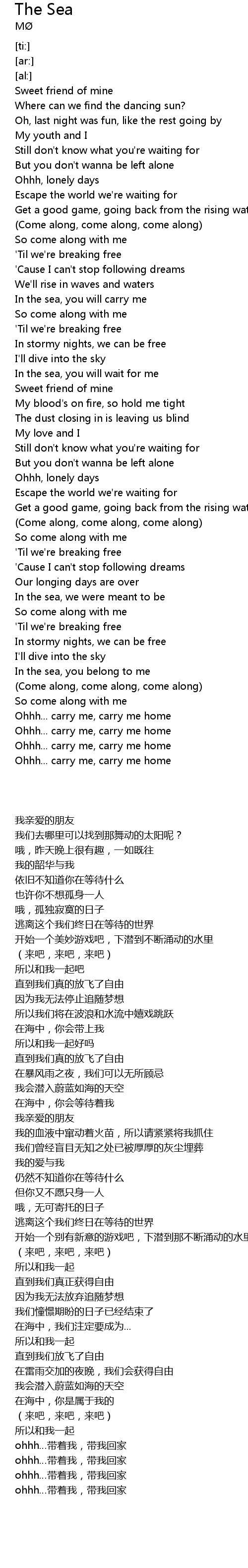 In the sea, you will carry me |
