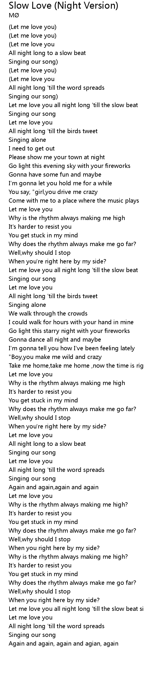 Let me love you all night long 'till the slow beat |