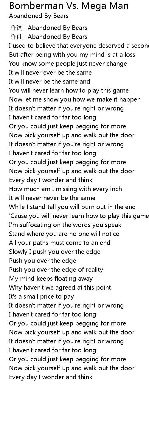 | [00:00.000] | 作词 : Abandoned By Bears |