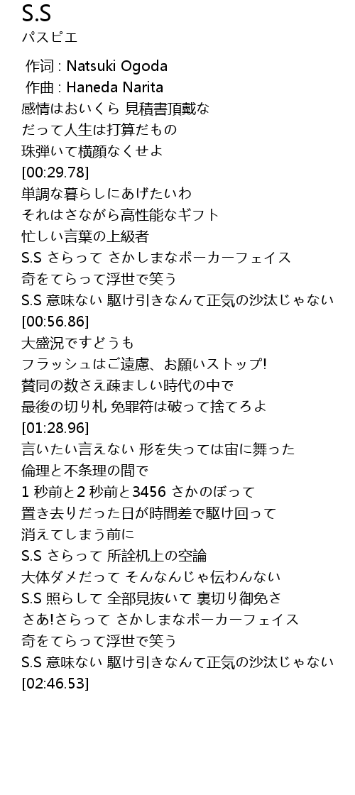 | [00:43.14] | S.S さらって さかしまなポーカーフェイス |