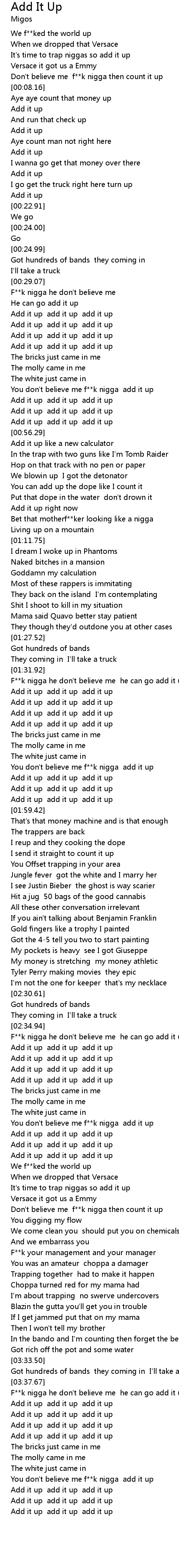 You don't believe me f**k nigga add it up |