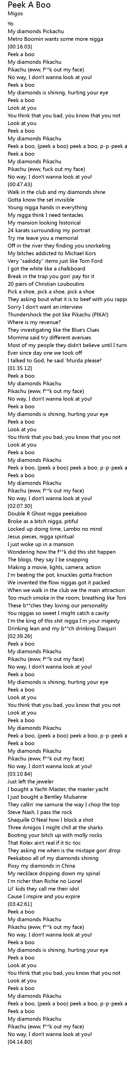 Peek a boo, (peek a boo) peek a boo, p-p-peek a boo |