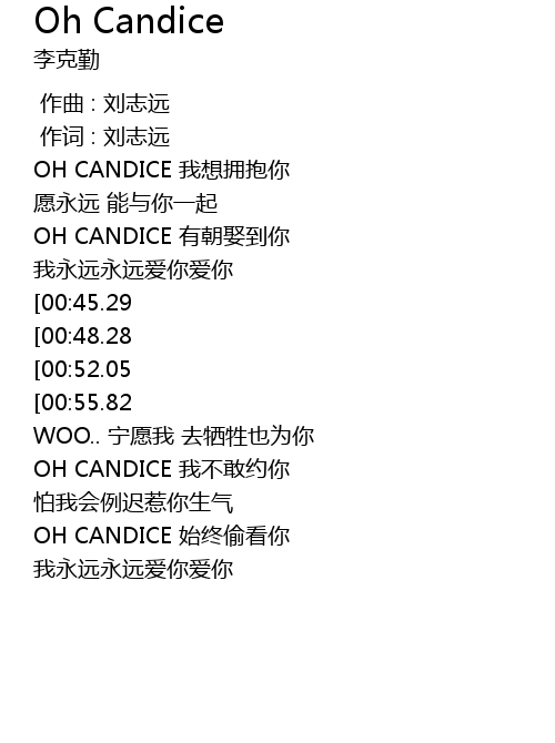 | [00:25.18] | OH CANDICE wo xiang yong bao ni |