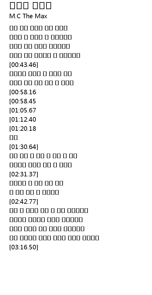 | [02:42.99] | 제발 나 모르게 그대 또 다른 사랑하세요 |