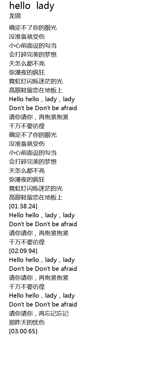 | [00:49.56] | Hello hello, lady, lady |
