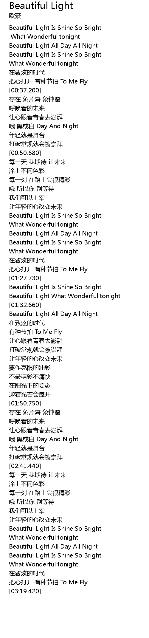| [01:33.210] | Beautiful Light All Day All Night |