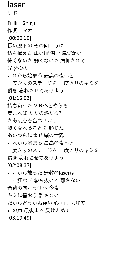 | [02:29.31] | ここから放った 無数のlaserは |