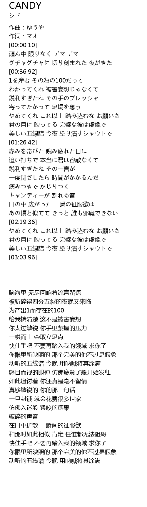 | [01:57.81] | 仿佛入迷般 紧咬的糖果 |