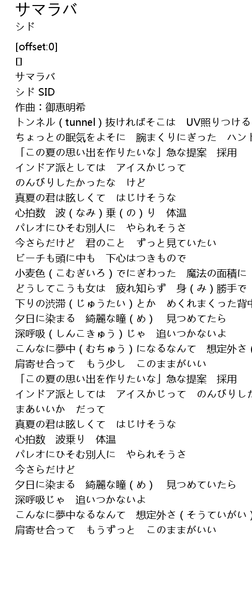 | [02:56.295] | 真夏の君は眩しくて はじけそうな |