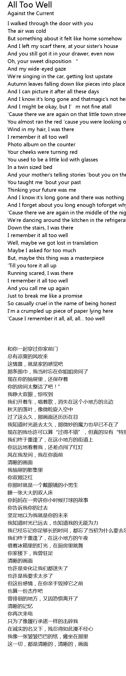 | [03:35.34] | 'Cause I remember it all, all, all... too well |
