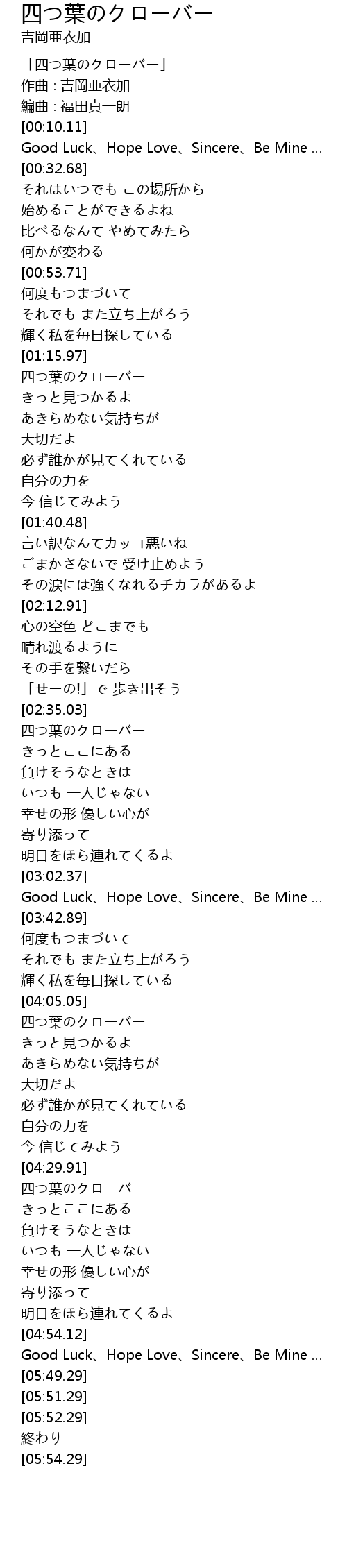 | [00:00.11] | 「四つ葉のクローバー」 |
