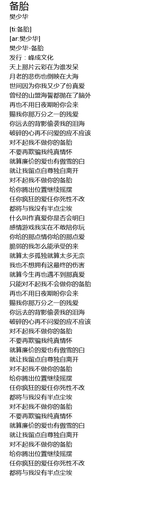 | [00:03.139] | fán shǎo huá bèi tāi |